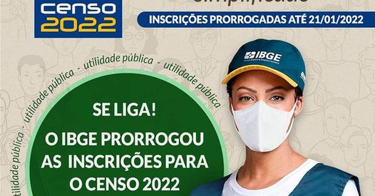 O IBGE prorrogou as inscrições para o Censo 2022 até o dia 21 de Janeiro.
