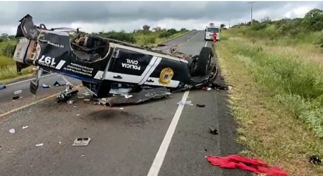 Imagens feitas por motoristas, que passaram no trecho momentos após o acidente, mostram que pelo menos três agentes foram arremessados de dentro da viatura. Os corpos são filmados em meio à rodovia. Sentados à beira da estrada estão outras quatro pessoas com vida e feridas.