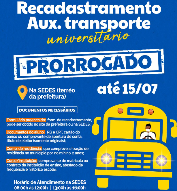 O recadastramento deve ser feito na Secretaria de Desenvolvimento e Proteção Social (SEDES) até o dia 15 de julho, sexta-feira.