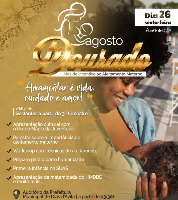 A Prefeitura de Dias d'Ávila promoverá na próxima sexta-feira (26) um evento em alusão à campanha de incentivo ao aleitamento materno "Agosto Dourado".