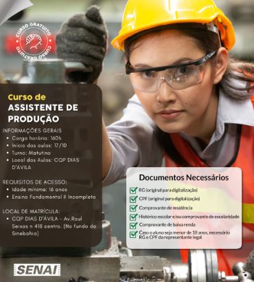 A Prefeitura Municipal, por meio da Secretaria de Desenvolvimento Econômico, em parceria com o SENAI, oferece aos diasdavilenses os cursos profissionalizantes de Assistente de Produção (160h) e Bombeiro Civil (240h).