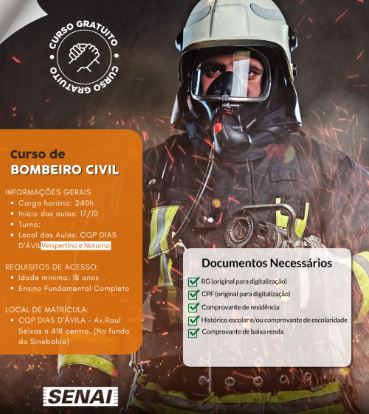 As inscrições ocorrerão hoje (11/10) e quinta-feira (13/10), no CQP (Anexo ao SINE Bahia), mesmo local onde as aulas serão ministradas, a partir do dia 17/10.