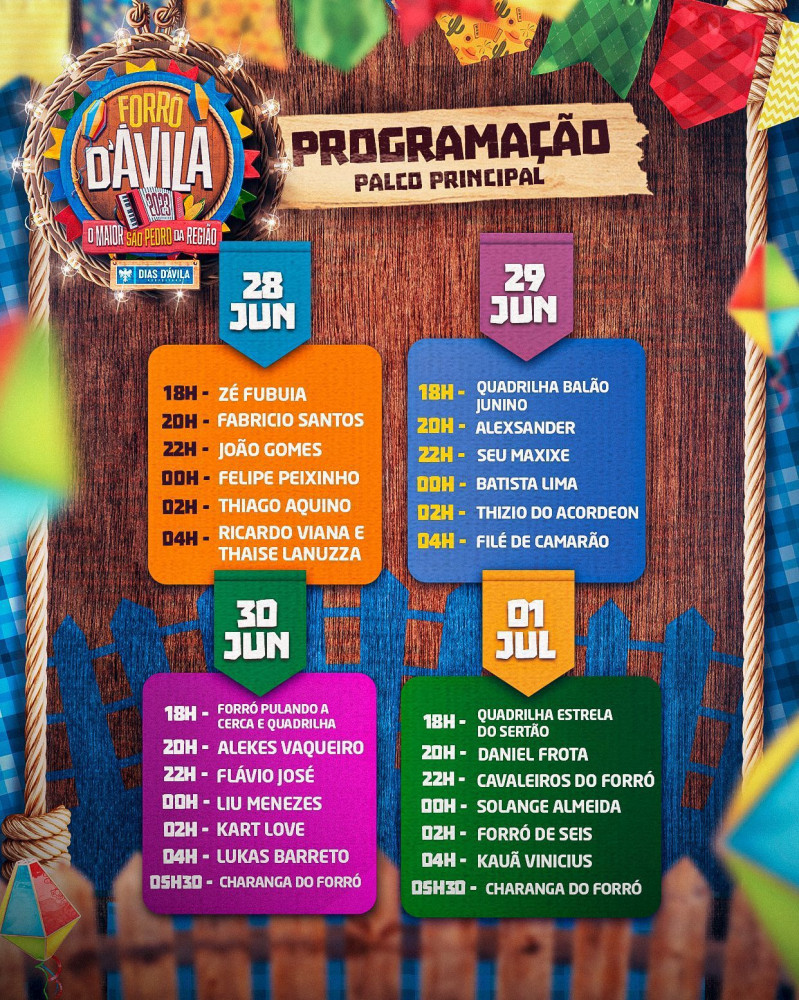 A Prefeitura de Dias d’Ávila, através da coordenação de eventos, realiza a partir desta quarta-feira (28/06), a festa de São Pedro. O evento, que já é tradição na cidade e sempre atraí público de municípios circunvizinhos, segue até sábado (01/07).