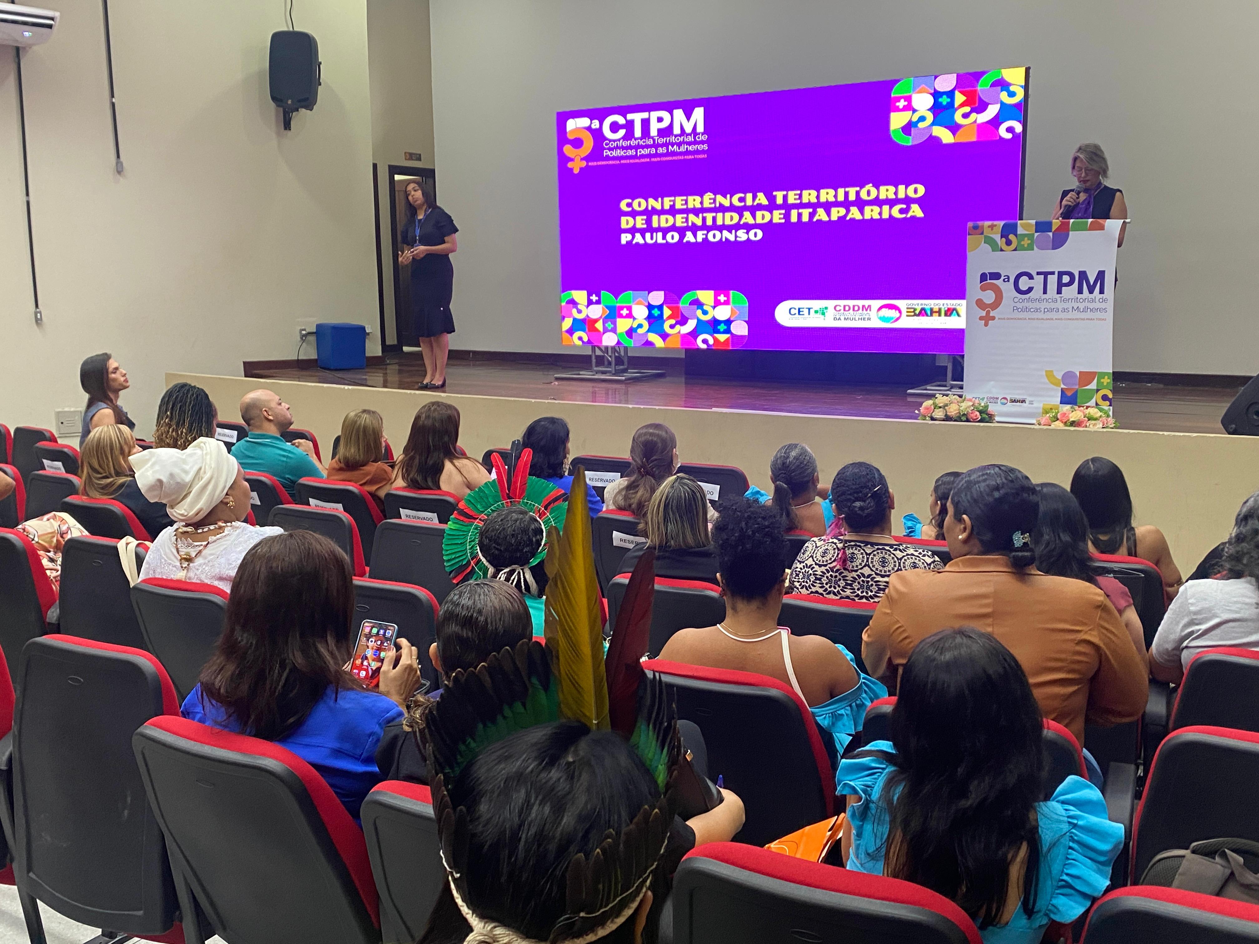 A Secretaria das Mulheres do Estado (SPM) está mobilizada para a realização das Conferências Territoriais de Políticas para as Mulheres (CTPM), para alcançar todos os 27 Territórios de Identidade da Bahia (TI). Só nesta semana, de segunda a sexta, estão sendo realizadas conferências envolvendo 18 territórios. Nesta quinta-feira (14), as CTPM estão sediadas em três municípios: Alagoinhas (TI Litoral Norte e Agreste Baiano), Feira de Santana (TI Portal do Sertão) e Ipirá (TI Bacia do Jacuípe). Nesta sexta-feira (15) será encerrado o ciclo das territoriais com as conferências em Itabuna (TI Litoral Sul), Amargosa (TI Vale do Jequiriça), Irecê (TI Irecê) e Governador Mangabeira (TI Recôncavo).