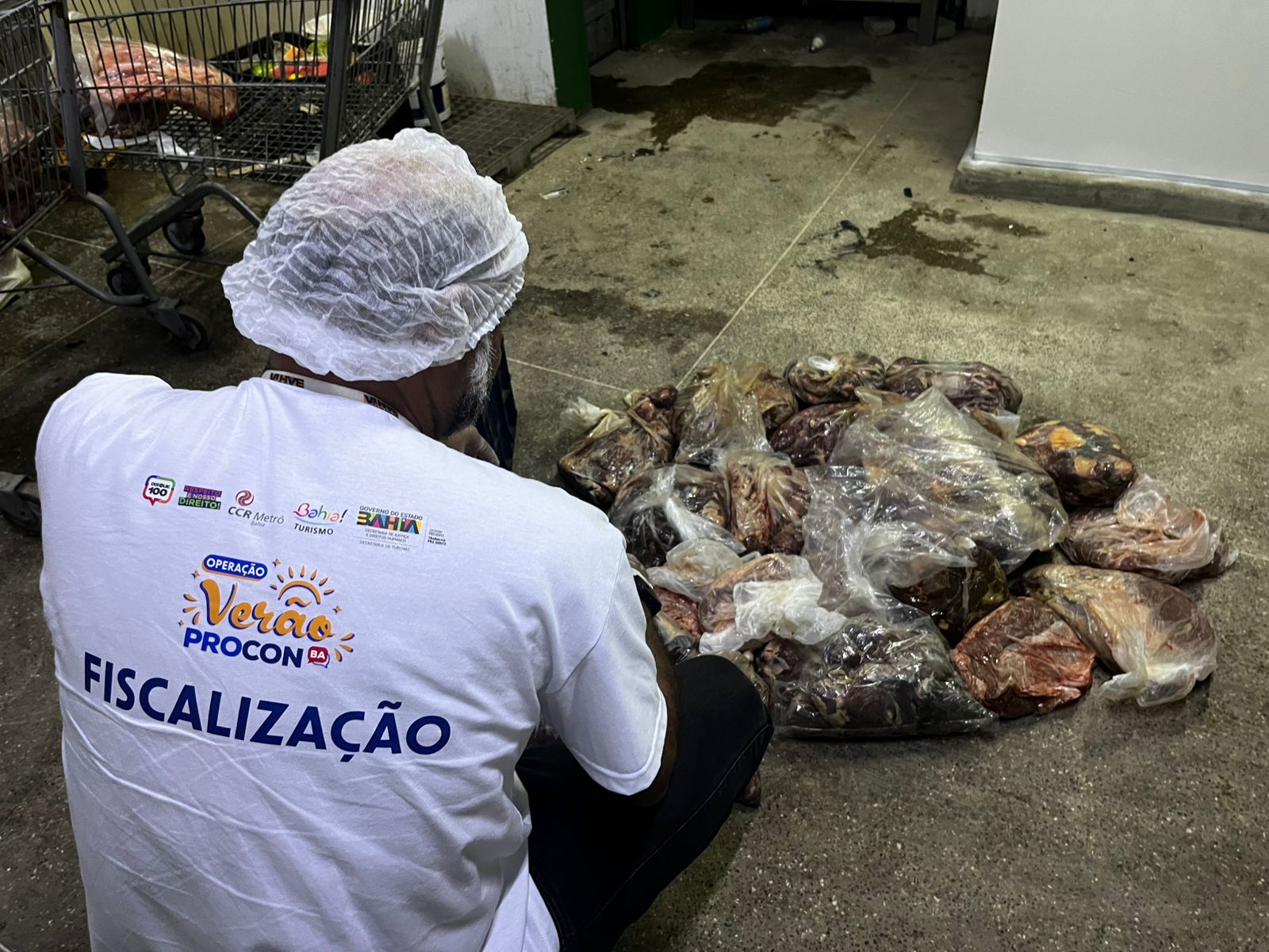 Em pleno verão, período de alta circulação de turistas e moradores nas praias do Litoral Norte baiano, o Procon-Ba (Superintendência de Proteção e Defesa do Consumidor) apreendeu 140,70 quilos de carne bovina imprópria para o consumo humano em um grande supermercado localizado em Praia do Forte, distrito de Mata de São João, O estabelecimento foi autuado nesta quinta-feira (22), durante a Operação Verão. A ação, iniciada na última segunda-feira (19), segue até o final de semana e tem como objetivo intensificar a fiscalização em regiões turísticas, onde o aumento do consumo exige maior rigor no cumprimento das normas de segurança alimentar e de defesa do consumidor.