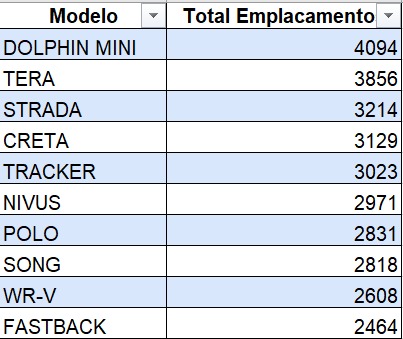 A liderança do BYD Dolphin Mini é acompanhada pelo excelente desempenho da BYD com todo seu portfólio. A linha Song também figura entre os 10 mais vendidos no varejo, ocupando a 8ª posição, com 2.818 unidades emplacadas. A presença simultânea dos dois modelos reforça que o posicionamento e a crescente demanda por carros eletrificados não são um fenômeno pontual, mas uma transformação na preferência do consumidor e consequentemente na dinâmica do próprio mercado.