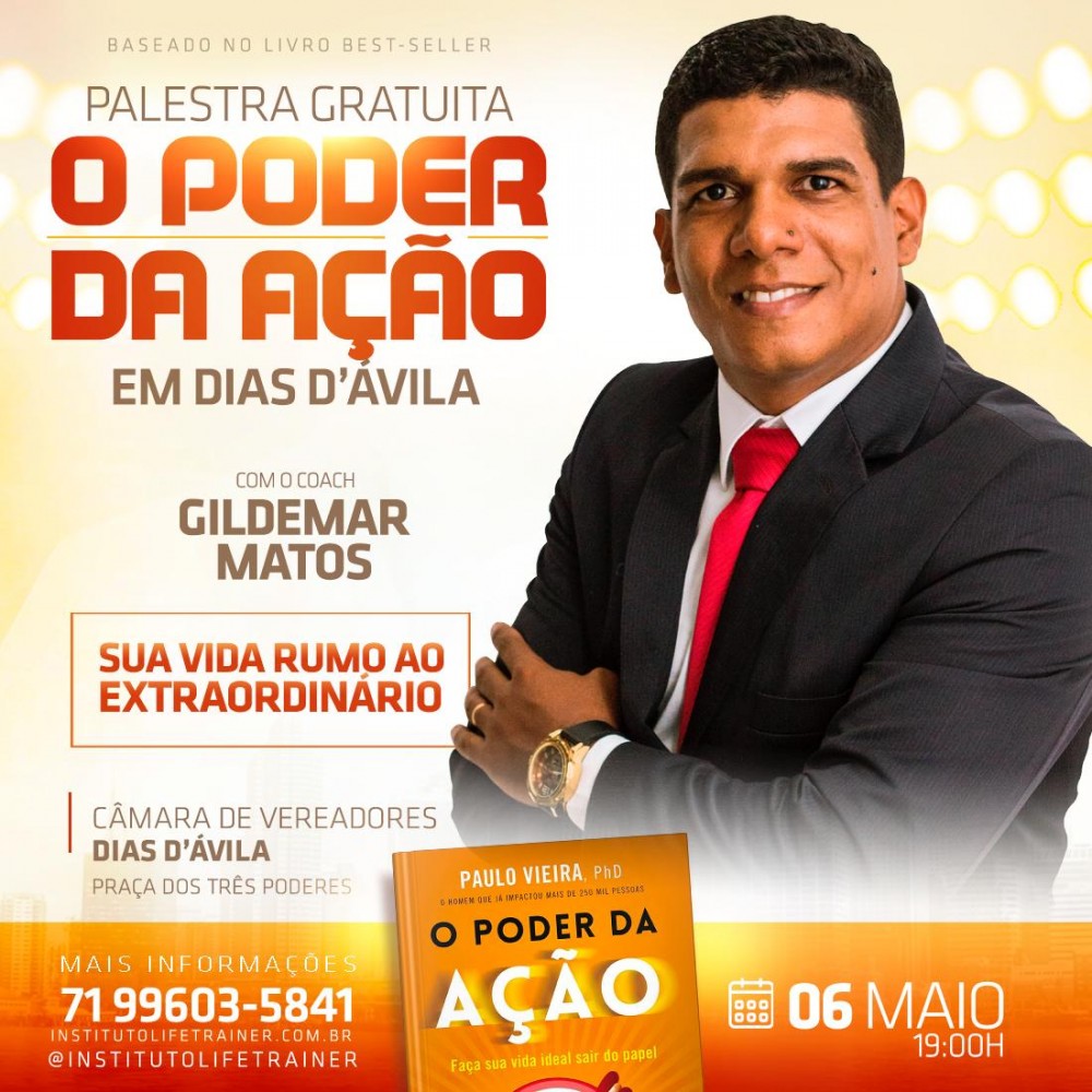 A palestra "O Poder da Ação" acontecerá no auditório Câmara de Vereadores do Município, no dia 06/05 às 19:00hs e é aberto ao público, tem como objetivo orientar os participantes sobre: