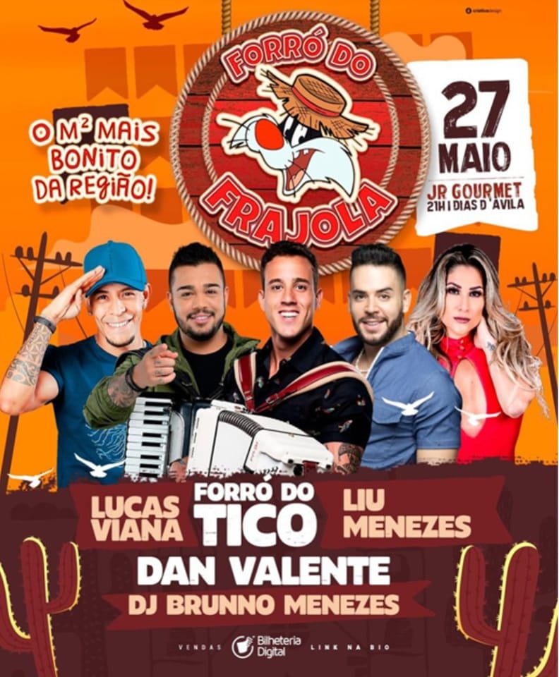 E esse ano a festa traz como atrações as bandas Forró do Tico, Dan Valente, Lucas Viana, Liu Menezes e ainda o DJ Brunno Menezes. Ou seja, uma prévia mais que top, dos festejos juninos de 2023.